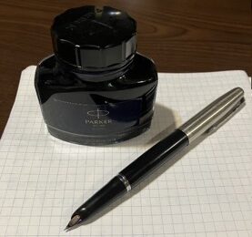 最近ハマっているのは万年筆…パーカーのくみ上げ式の万年筆で、インク色はブルーブラック✒️